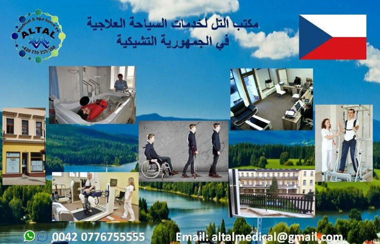 مكتب التل الذي مقره جمهورية التشيك والذي قام بتأسيسه كوادر عربية بالتعاون مع أخصائين وخبراء ممن يجيدون اللغة العربية والتشيكية , ومجالنا في تخصص العلاج الطبيعي والخدمات الطبية والسياحية, ويتعامل مكتبنا مع عدد من المصحات ومراكز العلاج الطبيعي التي لها تاريخ عريق وشهرة أوروبية واسعة حيث يكمن سر هذه المصحات في المياة المعدنية ويود البرومين الذي يحتوي على كمية عالية من اليود التي تفوق تلك المتواجدة في المناطق البحرية وذالك لمعالجة حالات عديدة , والرادون الذي بدوره يعطي النشاط للاعصاب والعضلات وتخفيف الآلام , وطين اللسلاتين والذي يحتوي على جميع الاملاح والمواد التي يحتاجها الجسم , وهدف مكتبنا كسب ثقتكم بتقديم كافة التسهيلات وأفضل الخدمات لتحقيق إقامة علاجية ناجحة حيث تعود على المرضى بالفائدة الشاملة لاستعادة صحتهم بأذن الله